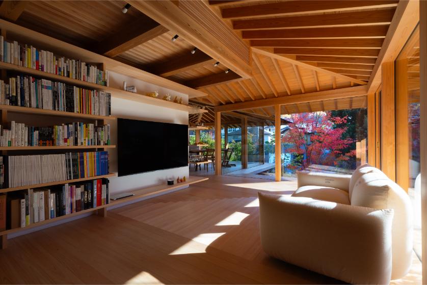 内と外の境界を曖昧にすることで、光や季節の移ろいが日常の一部として取り込まれています。